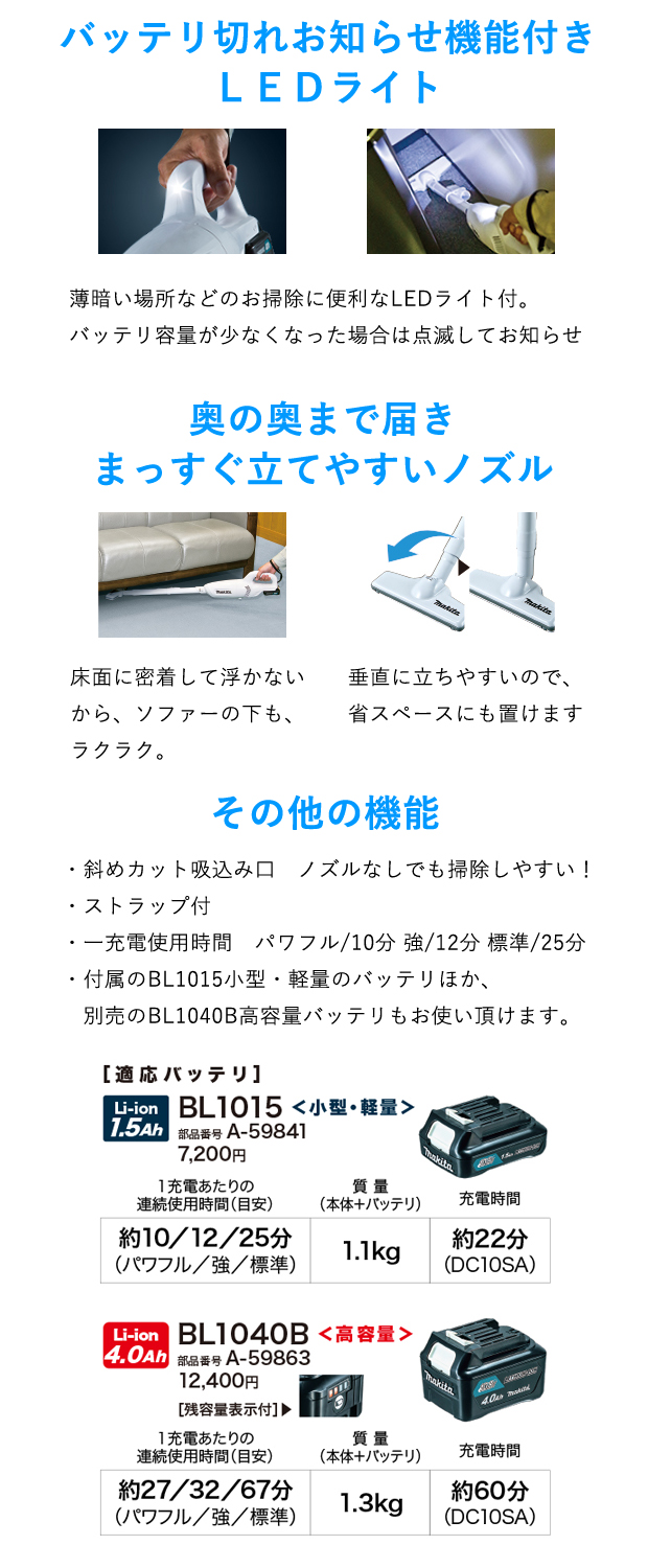マキタ 7.2V充電式クリーナー CL070DSH 特別価格¥9,500円(税込10,450円) |
