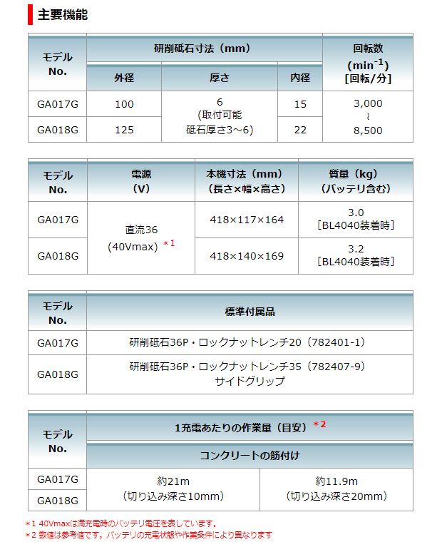 マキタ 40VMAX 125mmスライドスイッチ充電式ディスクグラインダ GA018GRMX/GZ 特別価格¥64,600円(税込71,060円) |