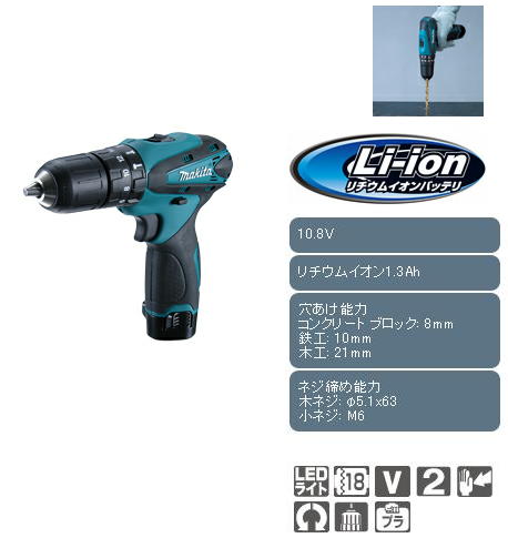 マキタ、10.8V充電式震動ドライバドリル、HP330DWX、BL1013採用、リチウムイオンバッテリー搭載 大阪日本橋「柴商」