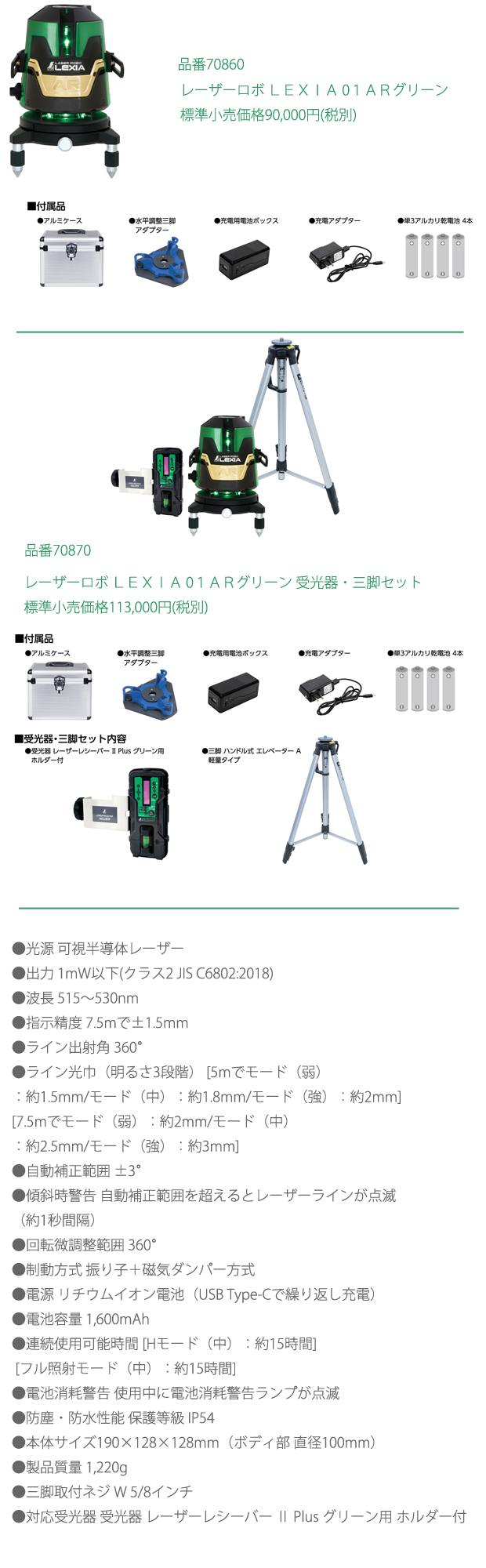 シンワ レーザーロボLEXIA 01AR グリーン床から15mmの横全周タイプ登場