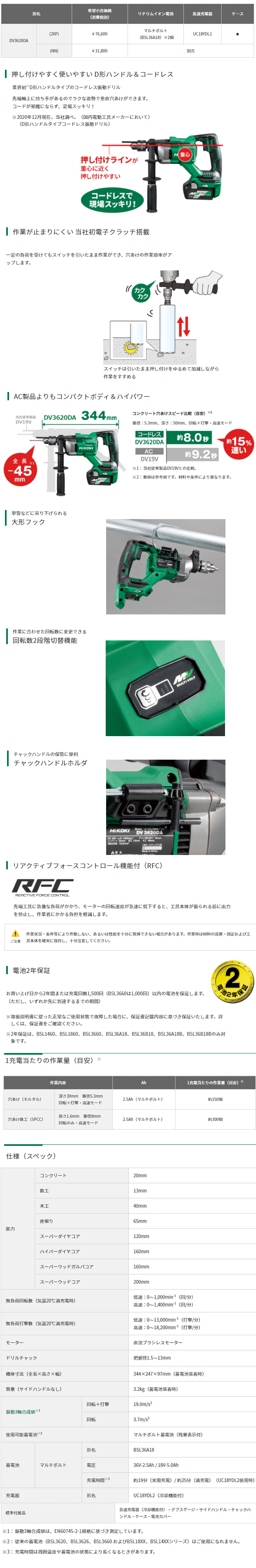 ハイコーキ、Hikoki、振動ドリル、DV3620DA 大阪日本橋「柴商」