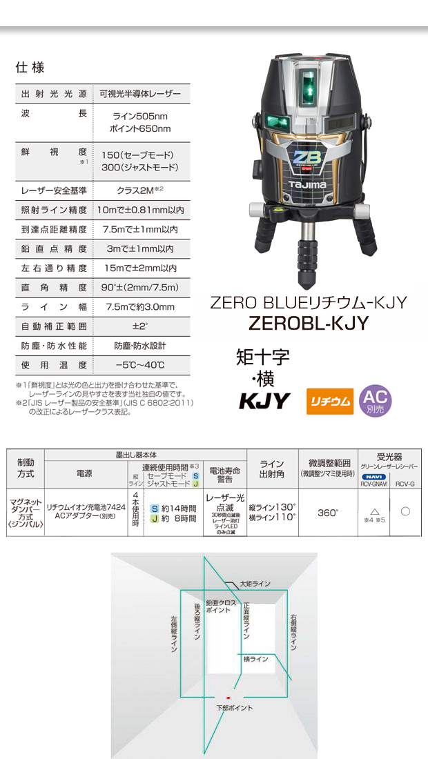 TAJIMA、レーザー、墨出し器、ブルーグリーン、青、中間、ジンバル、グリーンレーザー、ブルーレーザー、受光器、 大阪日本橋「柴商」